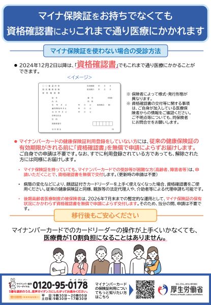 2025年12月2日から「マイナ保険証」または「資格確認書」をご提示ください